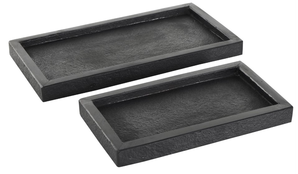 The contemporary set of 2 multipurpose tray features meticulously cut and shaped marble to create a sleek rectangle shape, painted with black to enhance its appeal