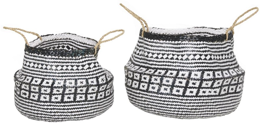 Designed with a free-spirited charm where vibrant hues, eye-catching patterns, and whimsical accents transform your space and showcase your personality. These boho-themed baskets are woven seagrass with 2 handles. Each basket features black and white woven patterns with soft sheen finish.Read More