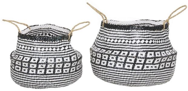 These have round basket shapes with wide handles and tribal inspired weaving pattern