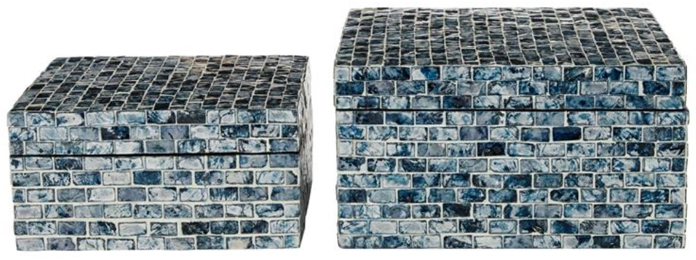 A practical yet stylish upgrade that instantly elevate the look of your room. Perfect way to add depth and texture to your surface space with this compact and discreet box. This blue set of 2 decorative keepsake boxes make for an ideal jewelry box or table centerpiece in any beach-themed home living room. Designed with felt or rubber stoppers at the base that prevent scratching furniture and table tops, as well as sliding around. This item ships in 1 carton. Mother of pearl box makes a great gift for any occasion. Due to the handmade nature of this item, no two will be alike, there will be slight differences in shape, size, and color. Suitable for indoor use only. This item ships fully assembled in one piece.