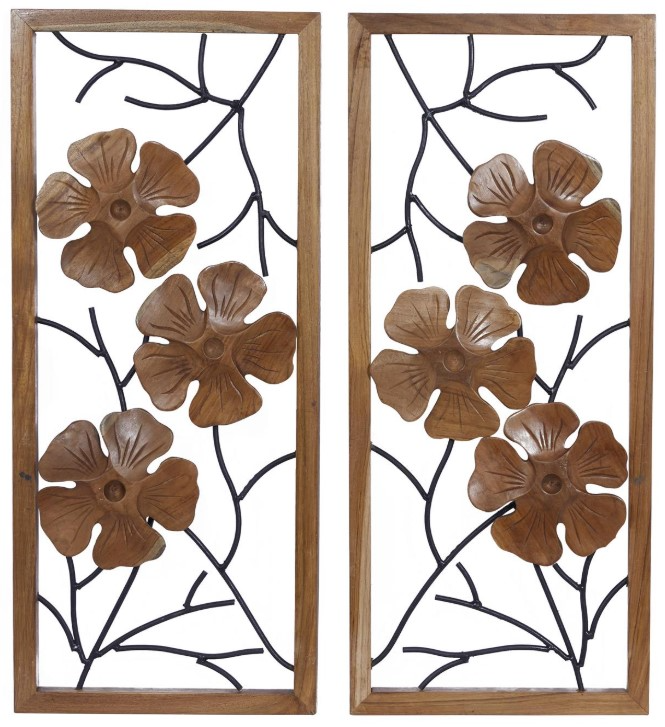 This brown colored teak wall sculptures comes as a set of 2
