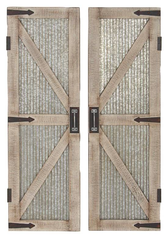 Each material in this farmhouse set of 2 room wall decors has been expertly crafted with the corrugated metal panels are encased within carved wooden frames to create an authentic barn door look