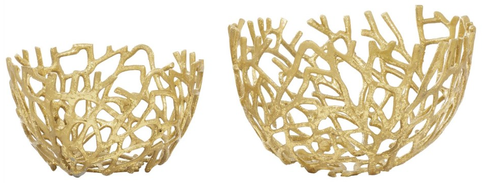 The perfect compact storage for your belongings while keeping your surface space protected. Give your surface space a finishing touch with these beautifully crafted decorative bowls. This coastal style inspired design gold aluminum decorative bowl set will make a refreshing and laidback centerpiece on tables in your living room or kitchen. This item ships in 1 carton. Please note that this item is for decorative purposes only and is not food safe. Aluminum decorative bowl makes a great gift for any occasion. Due to the handmade nature of this item, no two will be alike, there will be slight differences in shape, size, and color. Suitable for indoor use only. This item ships fully assembled in one piece.