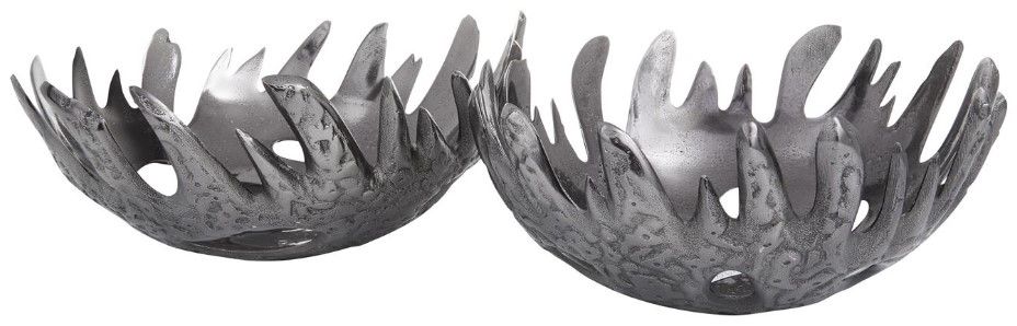Embrace artistic expression with a style that highlights bold designs with sleek lines, neutral elements, and a minimalist aesthetic. This decorative bowl set is crafted of robust and quality aluminum material. This set of 2 decorative bowls features black nickel finish that suits any neutral-colored interior. These black aluminum bowls feature an abstract-shaped design with decorative holes.Read More