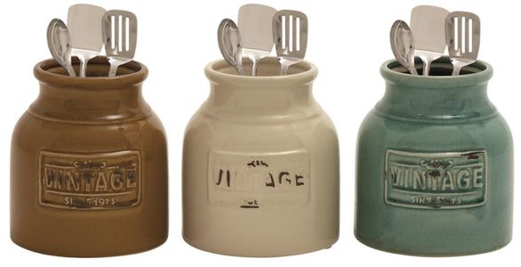 The vintage design of this home decor brings a sense of the past to your home. These decorative cutlery jars feature round, wide-mouthed bodies made of ceramic. Stoneware with glossy mint green, eggshell white, and mustard yellow glaze finishes.Read More