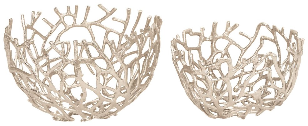 The perfect compact storage for your belongings while keeping your surface space protected. Give your surface space a finishing touch with these beautifully crafted decorative bowls. This coastal style inspired design silver aluminum decorative bowl set will make a refreshing and laidback centerpiece on tables in your living room or kitchen. This item ships in 1 carton. Please note that this item is for decorative purposes only and is not food safe. Aluminum decorative bowl makes a great gift for any occasion. Due to the handmade nature of this item, no two will be alike, there will be slight differences in shape, size, and color. Suitable for indoor use only. This item ships fully assembled in one piece.
