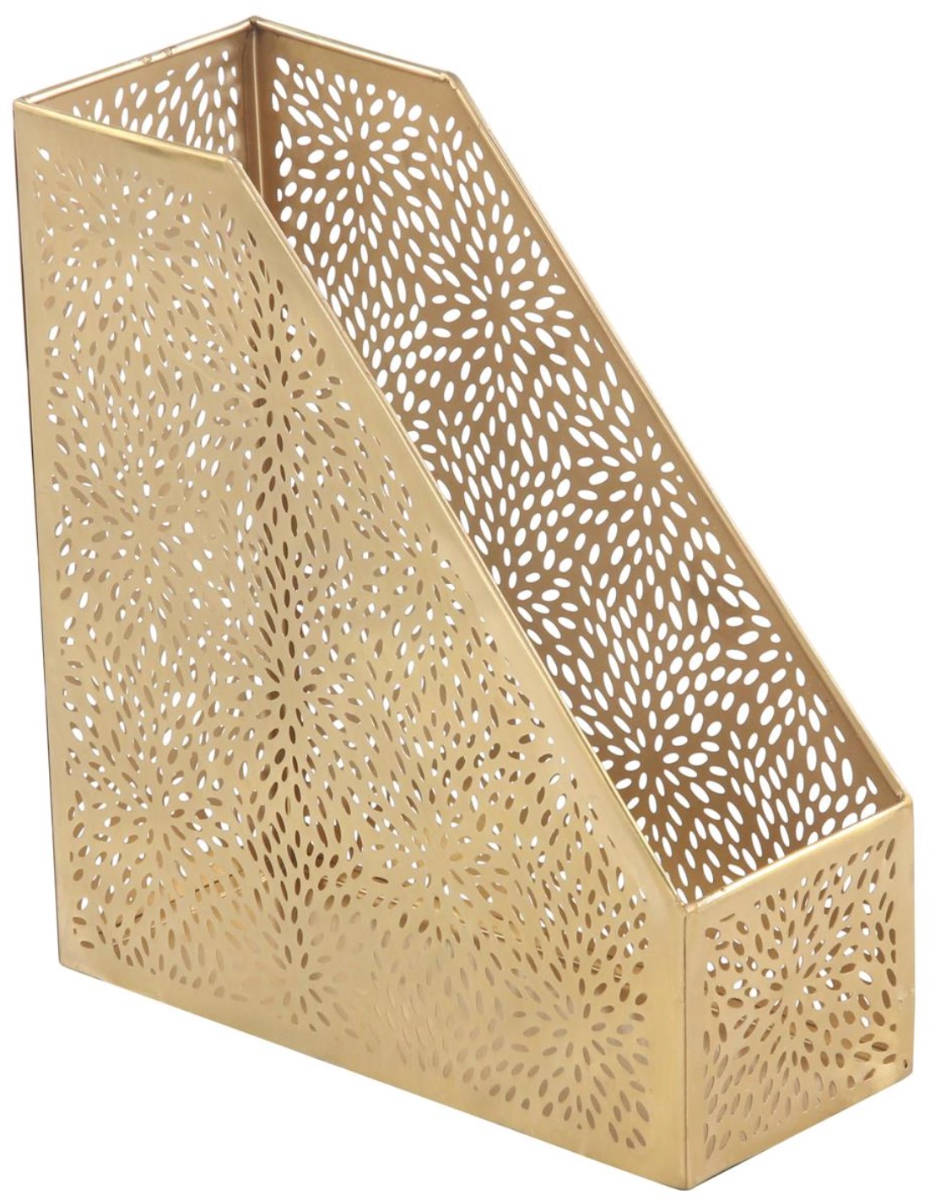 The perfect compact storage for your belongings while keeping your space free of clutter. Bring a finishing touch to your home with an inviting appeal with this chic magazine holder. Place the gold magazine rack in your living room or office for both functionality and style.