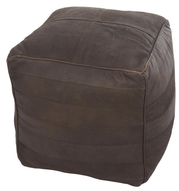 Brown square pouf features unique, horizontal linear panels at the sides that add visual interest and texture to the piece
